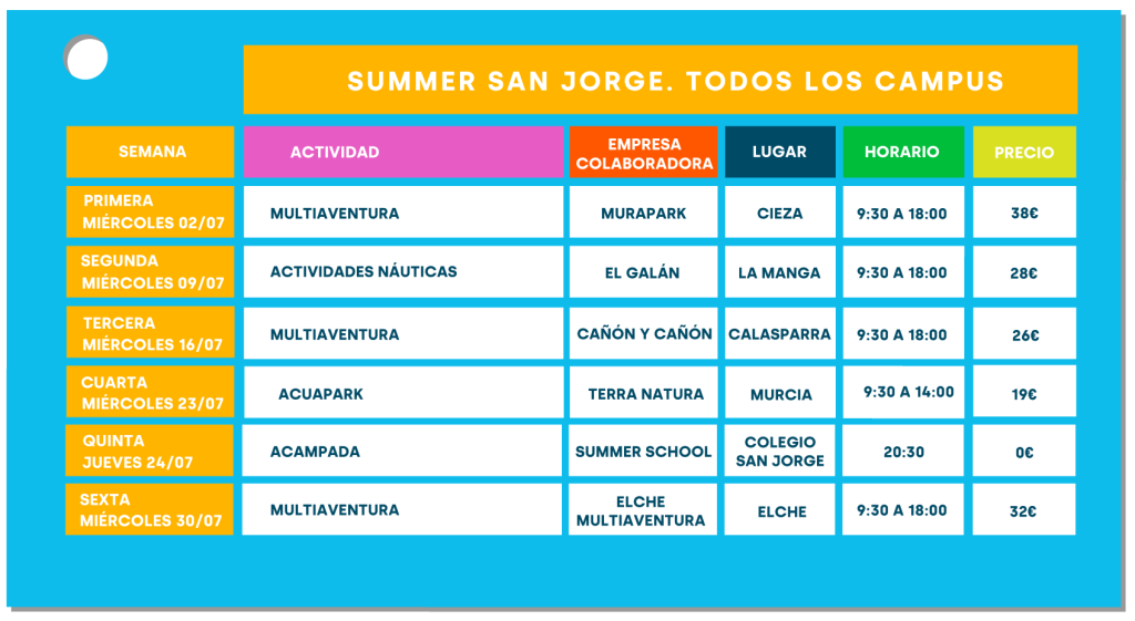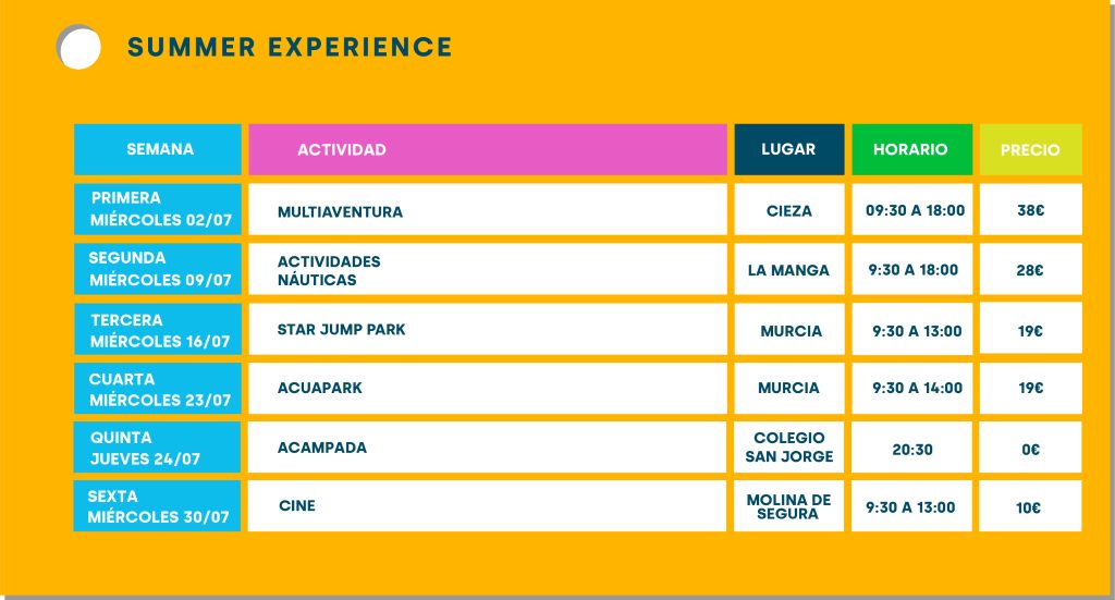 * Todas las excursiones tienen carácter voluntario. Si no optas por ellas, tus hijos seguirán el programa previsto en las instalaciones de Summer San Jorge.